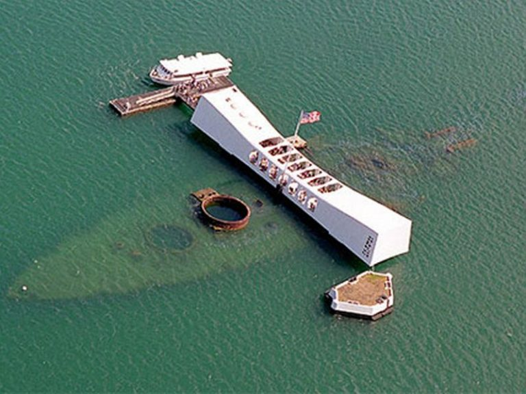 『海底に眠る戦艦アリゾナと千数百人の兵士をいたわる様に 建つアリゾナ記念館』