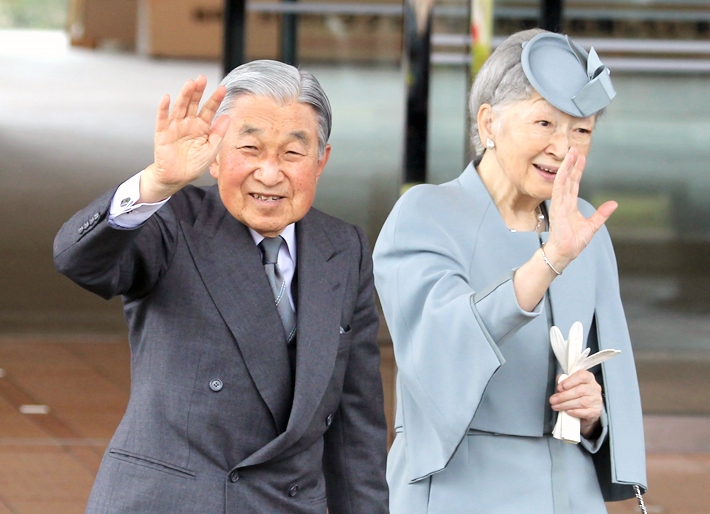 天皇皇后両陛下 平成29年(2017)10月29日(日)12:47 玄海ロイヤルホテル玄関前にて