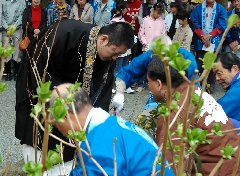 友人や社員を誘って鎮国寺に石楠花(しゃくなげ)の苗木を